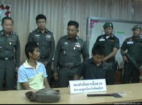 ล่าสุดวันนี้ (9 ตุลาคม) เจ้าหน้าที่ตำรวจก็สามารถจับกุมตัวคนร้ายได้แล้ว จำนวน 2 คน ประกอบด้วย นายธีรยุทธ ศรีคำ หรือ อู๊ด อายุ 24 ปี ผู้ลงมือสังหาร และนายมานิตย์ ยิ้มน้อย อายุ 31 ปี ผู้ร่วมขบวนการ ซึ่งทั้งสองคนถูกจับได้พร้อมของกลางเป็น ขวานเหล็ก และกำไลข้อมือของผู้เสียชีวิต รวมทั้งรถยนต์ที่ขโมยไป ซึ่งถูกดัดแปลงนำแผ่นป้ายทะเบียนอื่นมาติด