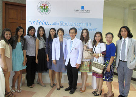 ศศิกร ซิมตระกูล (ที่ 5 จากซ้าย) ผู้จัดการฝ่ายการตลาดผลิตภัณฑ์ ลา โรช-โพเซย์ เวชสำอางชั้นนำจากฝรั่งเศสที่ได้รับความไว้วางใจจากแพทย์ผิวหนังทั่วโลกเพื่อการดูแลผิวบอบบาง ระคายเคืองง่าย ร่วมกับ สถาบันโรคผิวหนัง จัดกิจกรรมสัมมนาเรื่อง “เคล็ดลับ…เพื่อผิวขาวกระจ่างใสอย่างเป็นธรรมชาติ”โดยได้รับเกียรติจากแพทย์ผู้เชี่ยวชาญจากสถาบันโรคผิวหนัง พญ.พู่กลิ่น ตรีสุโกศล (ที่ 6 จากซ้าย) มาให้ความรู้เรื่องปัญหารอยหมองคล้ำบนใบหน้า และนายแพทย์จินดา โรจนเมธินทร์ (ที่ 5 จากขวา) มาแนะนำนวัตกรรมในการรักษารอยหมองคล้ำ พร้อมร่วมพูดคุยปัญหาผิวพรรณกับ คุณ หมิง ชาลิสา บุญครองทรัพย์ ในงานนี้ ลา โรช-โพเซย์ ได้นำเสนอถึงกลุ่มผลิตภัณฑ์ เซนซิ ไวท์ (SENSI WHITE) เพื่อผิวขาวกระจ่างใสสมบูรณ์แบบ สำหรับผิวบอบบาง ระคายเคืองง่าย ซึ่งได้รับความสนใจจากผู้เข้าร่วมงานอย่างคับคั่ง ณ ห้องประชุมเรณู โคตรจรัส สถาบันโรคผิวหนัง ถนนราชวิถี เมื่อเร็วๆ นี้