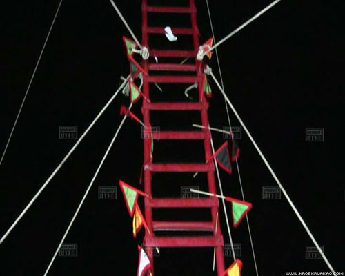 ร่างม้าทรงตกจากบันไดมีด สูงเท่าตึก 3 ชั้น ร่วงลงมากระแทกพื้นปูนสาหัส ก่อนเสียชีวิตในเวลาต่อมา ด้านคนในวงการทรงเจ้าเชื่อ เกิดจากการผิดสัจจะ หรือทำสิ่งที่ไม่ถูกต้อง เลยถูกเจ้าทิ้งกลางอากาศ