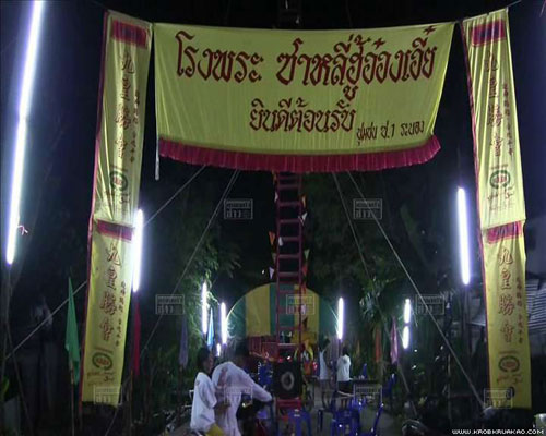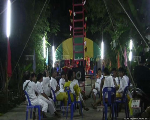 เมื่อเวลา 22.30 น. ของวานนี้ (15 ตุลาคม) ร.ต.อ.ปรีชา กรรมแต่ง ร้อยเวรสอบสวนสถานีตำรวจภูธรเมืองระนอง ได้รับแจ้งเหตุ มีผู้ตกจากบันไดมีดที่ใช้ประกอบพิธีทรงเจ้า ได้รับบาดเจ็บสาหัส จึงเข้าตรวจสอบสถานที่เกิดเหตุ พบเป็นศาลเจ้าแห่งหนึ่ง ตั้งอยู่ที่หมู่ที่ 4 ตำบลบางริ้น อ.เมือง จ.ระนอง โดยมีกองรอยเลือดอยู่ห่างจากบันไดมีดที่ใช้ประกอบพิธีทรงเจ้าประมาณ 1.5 เมตร ส่วนผู้ได้รับบาดเจ็บ ทราบชื่อคือ นายธวัชชัย กุชะนันท์ อายุ 22 ปี ชาวจ.ระนอง ซึ่งเจ้าหน้าที่อาสามูลนิธิระนองสงเคราะห์ได้นำส่งตัวโรงพยาบาล และเสียชีวิตในเวลาต่อมา
