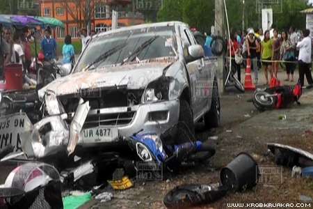 วันนี้ (28 พฤศจิกายน) ร.ต.ต.ศรศักดิ์ จันทร์ดี ร้อยเวร สภ.ตะกั่วทุ่ง จ.พังงา ได้รับแจ้งว่าเกิดอุบัติเหตุหน้าองค์การบริหารส่วนตำบลกะไหล อ.ตะกั่วทุ่ง ริมถนนเพชรเกษม สายตลาดโคกลอย-พังงา จึงได้เข้าไปตรวจสอบยังที่เกิดเหตุ พบว่า มีรถปิกอัพบรรทุกลูกกุ้งกุลาดำ ยี่ห้ออีซูซุ สีบรอนซ์ พุ่งชนขบวนรถบุปผชาติและรถนางนพมาศ ที่กำลังจะแห่รอบหมู่บ้านกะไหล ทำให้รถจักรยานยนต์และรถยนต์บริเวณใกล้เคียงได้รับความเสียหาย แล้วก็มีผู้ที่เข้ามาร่วมงาน ตำรวจ และสื่อมวลชน ได้รับบาดเจ็บหลายรายด้วย