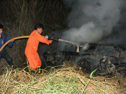 พ.ต.ท.ชวลิต แสงพงษ์วิทยา สารวัตรเวรสอบสวน สภ.คลองหลวง ได้รับแจ้งเหตุมีรถเก๋งเสียหลักตกข้างทางถนนพหลโยธิน ทางคู่ขนาน ขาออก ม.6 ต.คลองหนึ่ง อ.คลองหลวง จ.ปทุมธานี มีเพลิงลุกไหม้ รถเสียหายทั้งคัน จึงไปที่เกิดเหตุ พร้อมประสานรถดับเพลิงเทศบาลเมืองคลองหลวง 1 คัน พบรถเก๋งยี่ห้อลัมโบร์กีนี แอลพี 640 เวอร์ซาเช อิดิชัน หมายเลขทะเบียน ศข 111 กรุงเทพฯ ราคา 38 ล้านบาท มีทั้งหมด 20 คันทั่วโลก ตกอยู่ข้างทาง เพลิงลุกไหม้เสียหายทั้งคันโดยมีล้อรถหลุดออกมา 1 ข้าง กระเด็นไปจากจุดเกิดเหตุ 50 เมตร และกันชนหน้าตกอยู่ข้างทาง