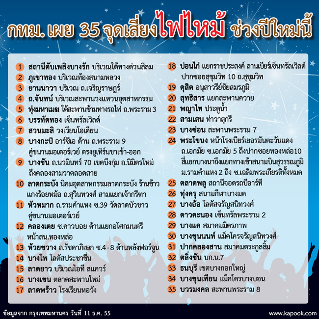 สำหรับ 35 จุดเสี่ยงไฟไหม้ช่วงปีใหม่ มีดังนี้