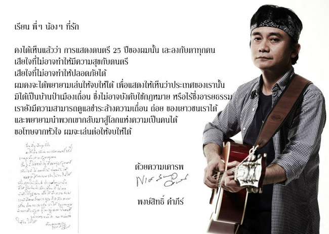"แถลงการณ์สืบเนื่องจากเหตุการณ์คอนเสิร์ต 25 ปี คำภีร์ มิวสิค เฟสติวัล