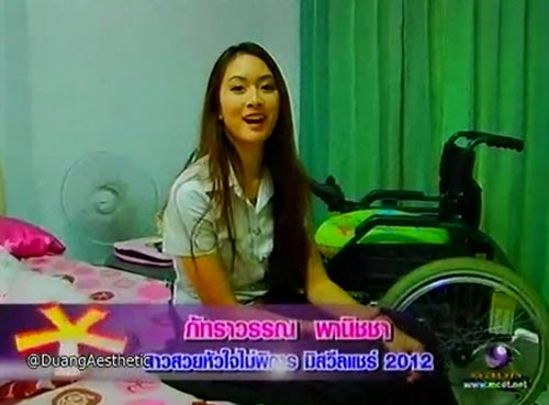 และเมื่อความพิการไม่ใช่ข้ออ้างในการเดินหน้าทำตามความฝัน เราจึงได้เห็น น้องชมพู่ ภัทราวรรณ พานิชชา ในวัย 21 ปี กล้าลุกขึ้นสู้กับตัวเองอีกครั้ง และความพยายามนั้นก็ส่งผลให้เธอสามารถคว้ามงกุฎ มิสวีลแชร์ ไทยแลนด์ 2012 (Miss Wheelchair Thailand 2012) มาเป็นรางวัลของชีวิต โดยสิ่งหนึ่งที่เราเห็นได้จากตัวน้องชมพู่ก็คือ ความกล้าหาญที่จะต่อสู้กับความเปลี่ยนแปลงที่เกิดขึ้น บวกกับการมีทัศนคติเชิงบวก ทำให้ชีวิตของน้องชมพู่มีความสุขไม่แตกต่างจากคนทั่วไปเลย