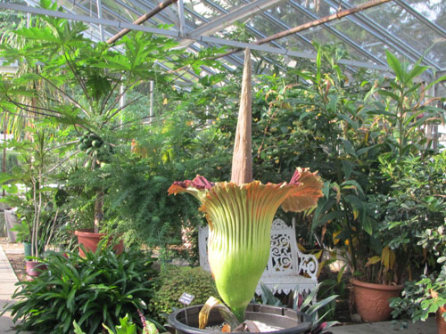 ด้านแพตทริเซีย โอลิเวียร่า นักพฤกษศาสตร์ กล่าวว่า ดอกไตตั้น อารั่ม มีอีกชื่อหนึ่งว่า ดอกไม้ศพ เนื่องจากกลิ่นของมัน มีลักษณะคล้ายกับกลิ่นเนื้อเน่า ซึ่งดอกไม้ดอกนี้เริ่มบานออกในช่วงคริสต์มาส และจะบานอยู่ได้เพียง 72 ชั่วโมง ก่อนที่จะหุบดอกลง โดยในระหว่างนี้ดอกไตตั้น อารั่ม จะส่งกลิ่นเหม็นตลบอบอวล และดึงดูดเหล่าแมลงเพื่อมาช่วยแพร่ละอองเรณู จากการวัดเมื่อวันที่ 27 ธันวาคม ดอกไตตั้น อารั่ม สูงกว่า 161 เซนติเมตร และสามารถสูงได้ถึง 304 เซนติเมตรเลยทีเดียว
