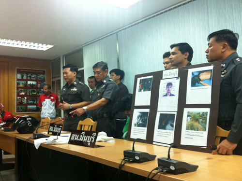 เจ้าหน้าที่ตำรวจสืบสวน สน.มีนบุรี จับกุม นักศึกษาช่าง ย่านมีนบุรี ไล่ยิงคู่อริ แต่พลาดกระสุนไปถูกประชาชนที่มาดูเหตุการณ์ดับ