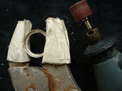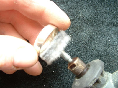นำผ้าไปชุบกับน้ำยาขัดโลหะ Brasso ถูกับเหรียญที่ติดอยู่กับสว่านไฟฟ้าที่กำลังหมุน ทำกี่ครั้งก็ได้ตามใจชอบ (แต่ต้องชุบน้ำยา Brassoบนผ้าทุกครั้งที่เริ่มขัดใหม่) จนกว่าแหวนจะขึ้นเงา