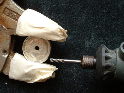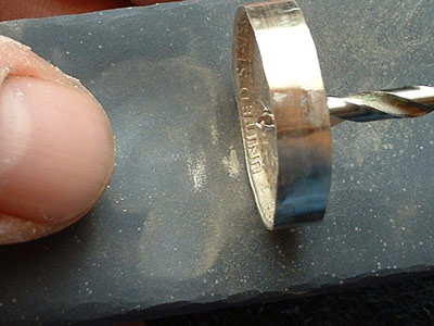 เสร็จแล้ว ใช้สว่านเจาะขยายรูตรงกลางเหรียญ ระวังเหรียญกระเด็นหากจับไม่แน่น เมื่อขยายรูได้ขนาดใกล้เคียงกับที่ต้องการก็หยุดได้