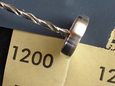 ต่อมาเอาเหรียญมาขัดกับกระดาษทราย (เริ่มขัดด้วยเบอร์ 400 ก่อน) ยึดเหรียญไว้กับสว่านที่กำลังหมุน ขัดจนทรายหมดความหยาบ จากนั้นขัดต่อด้วยกระดาษทรายเบอร์ 1200 จนเสร็จ
