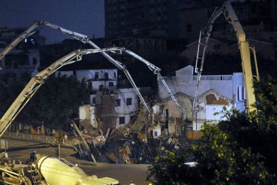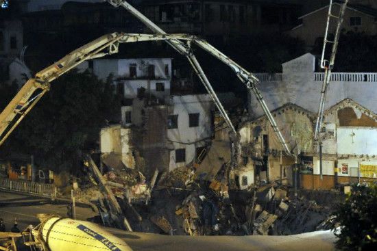 รายงานระบุว่า เมื่อเวลา 16.20 น. ก่อนเกิดเหตุตึกยุบตัว พนักงานก่อสร้างรถไฟฟ้าใต้ดินได้พบการทรุดตัวของดินบริเวณใกล้สถานที่ก่อสร้าง และได้ช่วยอพยพคนออกจากพื้นที่ ไม่นานก่อนที่พื้นดินจะจมลงเป็นหลุมกว้าง พร้อมกับการถล่มของอาคารอีก 2 หลัง อย่างไรก็ดี เมื่อเวลา 20.00 น. ของวันเดียวกันนั้น หน่วยกู้ภัยก็ได้นำอุปกรณ์ป้องกันภัยมาช่วยเสริมคอนกรีตในพื้นที่ซึ่งมีการทรุดตัวของดิน เพื่อให้มั่นคงขึ้น