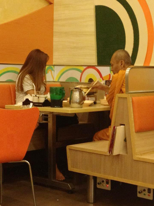 จากกรณีที่มีภาพฉาวของพระสงฆ์นั่งรับประทานอาหารและไอศกรีมในร้านดังกลางห้างพร้อมกับหญิงสาว เผยแพร่ในโลกอินเทอร์เน็ต จนเกิดเป็นกระแสวิพากษ์วิจารณ์อย่างกว้างขวางถึงความไม่เหมาะสมนั้น เมื่อวันที่ 11 กุมภาพันธ์ ที่ผ่านมา นายนพรัตน์ เบญจวัฒนานนท์ ผู้อำนวยการสำนักงานพระพุทธศาสนาแห่งชาติ เปิดเผยภายหลังการประชุมมหาเถรสมาคม เกี่ยวกับความคืบหน้าการตรวจสอบกรณีนี้ว่า จากการลงพื้นที่ตรวจสอบภาพจากกล้องวงจรปิดของร้านปิ้งย่างดังกล่าว พบว่าเป็นภาพที่เกิดขึ้นเมื่อเดือนธันวาคม 2555 แต่เพิ่งมีการนำมาเผยแพร่ทางเครือข่ายสังคมออนไลน์ และขณะนี้ได้ประสานให้เจ้าคณะปกครองและพระวินยาธิการดำเนินการตรวจสอบอยู่ว่าเป็นพระวัดใด