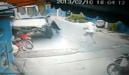 โดยคลิปดังกล่าว โพสต์โดย คุณ krabi1999 สมาชิกเว็บไซต์ยูทูบดอทคอม ชื่อคลิปว่า "เมาโหด" มีข้อความระบุใต้คลิปว่า "เหตุเกิดถนนในหมู่บ้านอู่ทองเพลสโครงการ 2 ลำลูกกา" อัพโหลดเมื่อวันที่ 11 กุมภาพันธ์ ที่ผ่านมา ซึ่งในคลิปนั้น ได้บันทึกภาพของแม่กำลังขี่จักรยาน โดยมีลูกน้อยนั่งซ้อนเบาะข้างหน้า สักพักก็มีรถปิกอัพขับส่ายไปส่ายมาพุ่งตรงเข้ามายังสองแม่ลูก ด้านแม่เห็นแล้วว่ารถจะพุ่งมา เลยรีบลงจากรถแล้วเข็นรถหลบไปทางอื่น แต่ก็ไม่ทัน รถพุ่งชนเข้ามาอย่างจัง ทำให้ลูกน้อยกระเด็นลงไปที่พื้น