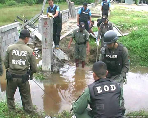ทั้งนี้ เมื่อไปถึงยังที่เกิดเหตุพบว่า เสาไฟฟ้าดังกล่าวซึ่งมีหม้อแปลงพาดอยู่ หักโค่น 2 ต้น และมีเศษซากชิ้นส่วนของระเบิดแสวงเครื่องที่คนร้ายประกอบใส่ไว้ในกล่องเหล็ก หนักประมาณ 10 กิโลกรัม จุดชนวนด้วยโทรศัพท์มือถือตกกระจายเกลื่อนลงไปในแอ่งน้ำใกล้โคนเสาไฟฟ้า ซึ่งเหตุการณ์ครั้งนี้โชคดีไม่มีใครได้รับบาดเจ็บ