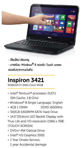 4GB DDR3, 500GB HDD(Slim Type 7mm.), DVD-SuperMulti, Weight 2.1kg