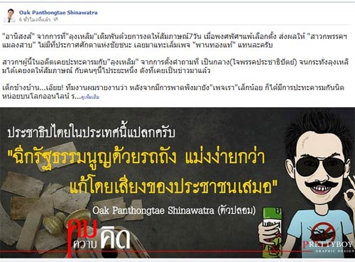 ขอขอบคุณภาพประกอบจาก เฟซบุ๊ก Oak Panthongtae Shinawatra , Oak Panthongtae Shinawatra (ตัวปลอม)