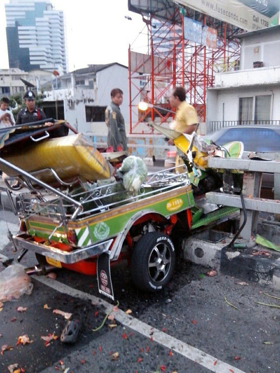 ผู้สื่อข่าวรายงานว่า เมื่อช่วงเช้าที่ผ่านมา (17 มีนาคม) ได้เกิดอุบัติเหตุรถสามล้อเครื่องขึ้นไปบนสะพานไทย-ญี่ปุ่น แต่เกิดไปชนแบริเออร์ทางเบี่ยงที่จะลงวัดหัวลำโพงเข้า ส่งผลให้คนขับรถสามล้อกระเด็นตกลงมาจากสะพานไทย-ญี่ปุ่น เสียชีวิตค้างอยู่บนตอม่อ ขณะที่ผู้โดยสารเพศหญิงก็กระเด็นตกลงมายังถนนเบื้องล่าง ได้รับบาดเจ็บสาหัส เจ้าหน้าที่จึงต้องรีบนำตัวส่งโรงพยาบาลจุฬาฯ แต่ก็เสียชีวิตในเวลาต่อมา
