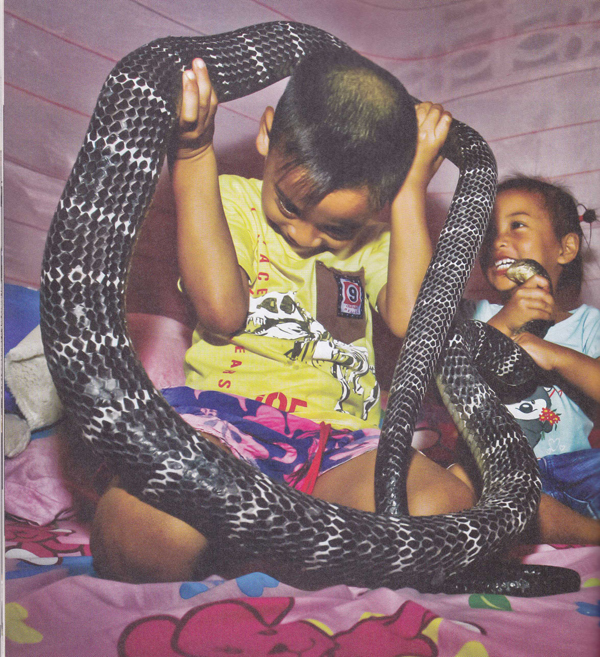 อย่างไรก็ตาม แม้จะมีคนสิ้นลมหายใจเพราะงู แต่นั่นก็ไม่ได้ทำให้ชาวบ้านตื่นตระหนกตกใจกลัวกัน เพราะสถิติคนที่ถูกงูกัดแล้วรอดชีวิตมีมากกว่าเยอะ คนในหมู่บ้านยังมีวิถีชีวิตที่ไปด้วยกันกับ "งู" ต่อไป ซึ่งก็ไม่เพียงแต่ผู้ใหญ่เท่านั้น แม้แต่เด็ก ๆ ในหมู่บ้านก็สามารถจับงูได้ราวกับเป็นของเล่น บางคนที่มีแววหน่อยก็สามารถขึ้นเวทีโชว์ชกกับงูเรียกทุนการศึกษาจากนักท่องเที่ยวได้โดยทั้งนี้ งูที่บรรดาเด็ก ๆ ได้รับการอนุญาตให้เล่นได้ คือ งูไม่มีพิษ หรือมีพิษอ่อน ๆ เช่น งูสิงห์, งูทางมะพร้าว แต่งูพิษร้ายแรงอย่างงูจงอางยังเป็นสิ่งต้องห้าม จนกว่าอายุจะเกิน 15 ปี