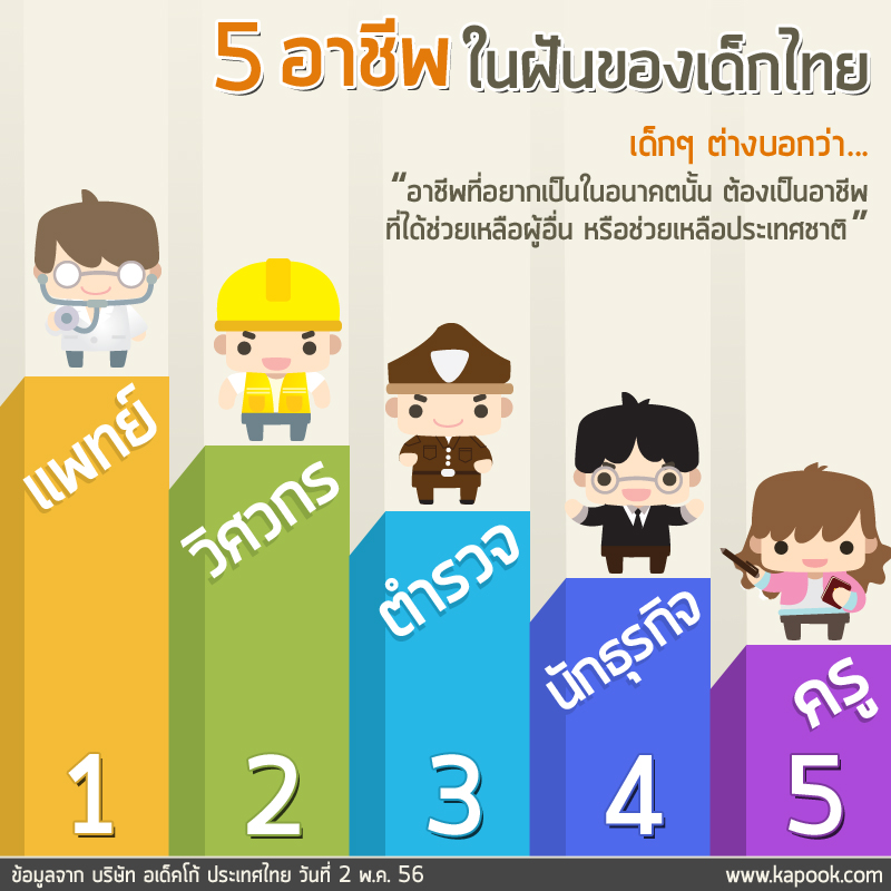 ส่วนอาชีพในฝันยอดฮิต 5 อันดับในใจของเด็กไทย มีดังนี้
