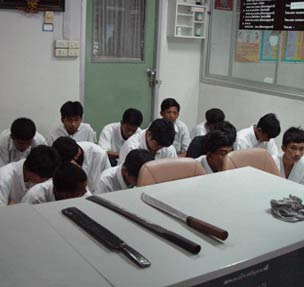 เปิดเรียนวันแรก เด็กช่างเปิดศึกตีกัน 3 จุดทั่วเมืองปทุมฯ ตำรวจรวบตัวได้กว่า 30 คน เผยอาวุธครบ ทั้งมีด ปืนปากกา ระเบิดปิงปอง