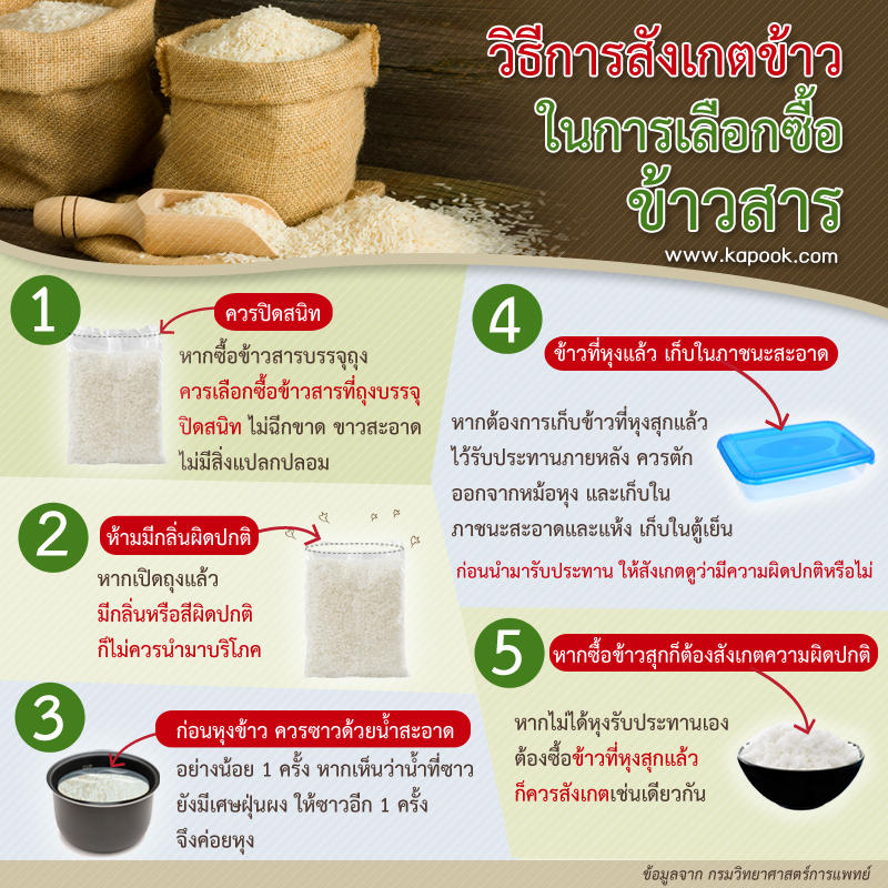5. หากไม่ได้หุงรับประทานเอง ต้องซื้อข้าวที่หุงสุกแล้วก็ควรสังเกตเช่นเดียวกัน อ่านรายละเอียดเพิ่มเติมจาก