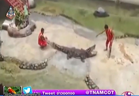 จากกรณีที่มีการเผยแพร่คลิปวิดีโอ จระเข้ งับหัวนักแสดง โพสต์โดยคุณ natzaleo สมาชิกเว็บไซต์ยูทูบดอทคอม เมื่อวันที่ 22 กรกฎาคม 2556 ความยาวไม่ถึง 1 นาที ซึ่งเป็นเหตุการณ์ขณะจระเข้งับหัวนักแสดงจนได้รับบาดเจ็บ และทำให้คลิปวิดีโอดังกล่าวถูกส่งต่อกันในโซเชียลเน็ตเวิร์กนั้น