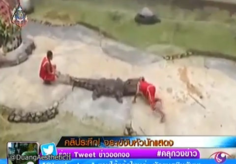 คลิปจระเข้งับหัวนักแสดงบาดเจ็บ ถูกแชร์สนั่นโลกออนไลน์ ด้านเจ้าของฟาร์มจระเข้และสวนสัตว์สมุทรปราการ ยอมรับเกิดขึ้นจริง แต่เป็นครั้งแรก เพราะพนักงานมีความชำนาญและได้การฝึกฝนมาเป็นอย่างดี