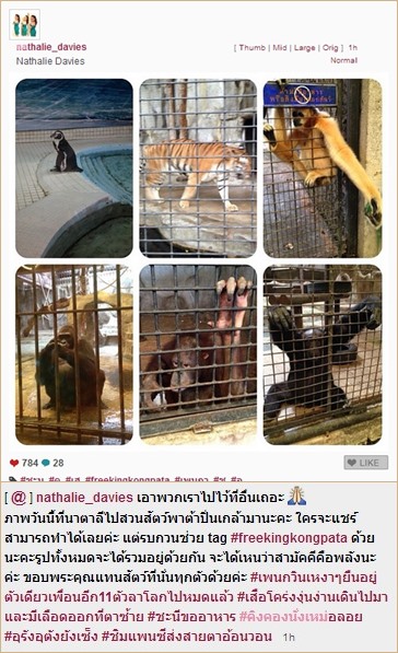ทั้งนี้ นาตาลี เดวิส นักแสดงชื่อดัง ผู้เริ่มโครงการระดมทุนช่วยเหลือเพื่อไถ่สัตว์ออกจากสวนสัตว์พาต้า ได้โพสต์ภาพสัตว์ในสวนสัตว์พาต้า อาทิ กอริลลา, ลิงอุรังอุตัง, เพนกวิน พร้อมระบุว่า เป็นภาพที่เธอถ่ายจากสวนสัตว์พาต้าปิ่นเกล้าในวันนี้ (20 สิงหาคม 2556) ซึ่งเป็นการสะท้อนให้เห็นว่า ทางสวนสัตว์ยังไม่มีการปรับปรุงการดูแลสัตว์ให้ดีขึ้น นอกจากนี้ เธอยังได้โพสต์ข้อความในอินสตาแกรมพร้อมภาพกอริลล่าพร้อมวอนให้คนไทยมาร่วมกันช่วยเหลือสัตว์เหล่านี้ด้วยว่า