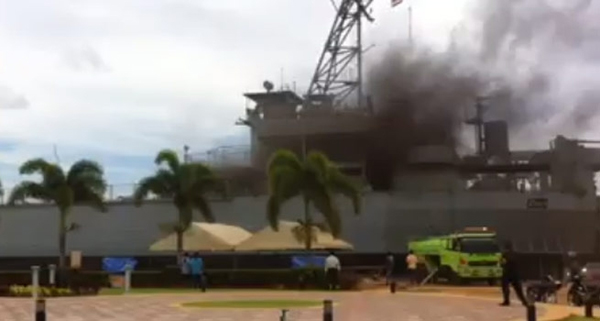 ไฟไหม้เรือรบหลวงลันตา หน้า อบจ.กระบี่ (ไอเอ็นเอ็น)