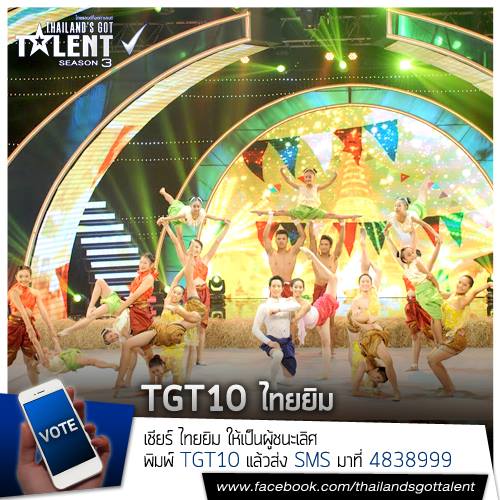 และในวันนี้ (25 สิงหาคม 2556) ก็จะเป็นวันที่เรารู้แล้วว่าใครจะเป็น Thailand's Got Talent คนที่ 3 ของเมืองไทย โดยเมื่อถึงเวลาประกาศผลโหวต ได้มีการประกาศรายชื่อ 6 ทีมที่ผ่านเข้ารอบ ก่อนจะเหลือเพียง 3 ทีมสุดท้าย อย่าง TGT02 สมชาย นิลศรี, TGT07 ศรศิลป์ และ TGT10 ไทยยิม ที่ต้องมาลุ้นผลคะแนนโหวตว่าใครเป็นผู้คว้าชัยชนะไปครอง ปรากฏว่า TGT02 สมชาย นิลศรี ได้เป็นแชมป์ไทยแลนด์ก็อตทาเลนต์ 2013 ขณะที่ TGT10 ไทยยิม ได้คะแนนมาเป็นอันดับ 2 ส่วน TGT07 ศรศิลป์ มีคะแนนเป็นอันดับ 3