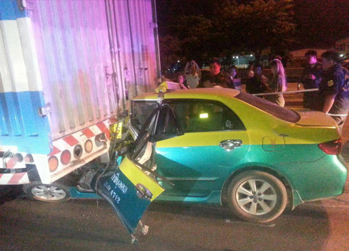 แท็กซี่พุ่งอัดท้ายรถเทรเลอร์ยับคนขับดับคาที่ (ไอเอ็นเอ็น)