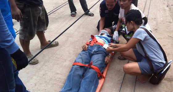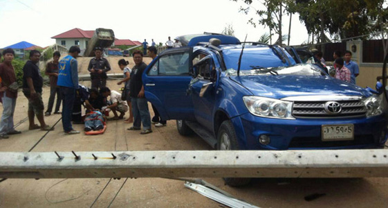 เมื่อวันที่ 28 สิงหาคม 2556 ผู้สื่อข่าวรายงาน เจ้าหน้าที่ตำรวจ สภ.พระสมุทรเจดีย์ จ.สมุทรปราการ ได้รับแจ้งว่ามีเหตุรถบรรทุกเกี่ยวเสาไฟฟ้า ที่บริเวณ ซ.บ้านพัก ถ.ประชาอุทิศ-คู่สร้าง ต.ในคลองบางปลากด อ.พระสมุทรเจดีย์ ส่งผลให้มีผู้ได้รับบาดเจ็บ 1 ราย หลังได้รับแจ้งจึงรุดไปตรวจสอบ