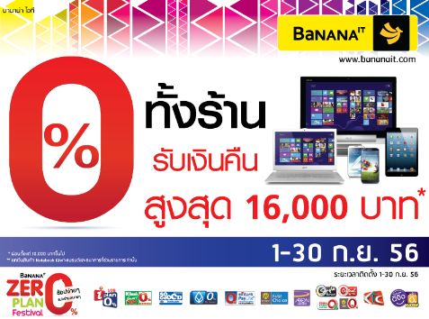 พร้อมรับเงินคืนสูงสุด 16,000 บาท*" ช้อปง่ายๆ แบ่งจ่ายสบายๆ กับโปรโมชั่นบัตรเครดิตของทุกธนาคารที่ร่วมรายการ โปรโมชั่นพิเศษที่จะทำให้คุณได้เป็นเจ้าของสินค้าไอทีสุดโปรดได้ง่ายๆก่อนใคร พบกับโปรโมชั่น "ผ่อน 0%