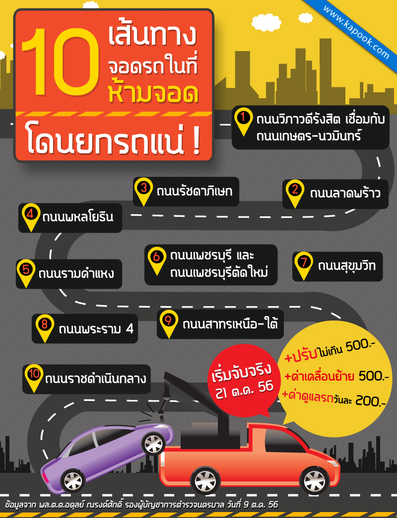 และจะมีการบังคับใช้กฎหมาย 100% ซึ่งการดำเนินการแบ่งเป็น 3 ระยะ คือ ระยะแรก ตั้งแต่วันที่ 9-15 ตุลาคม 2556 เป็นขั้นเตรียมการอุปกรณ์ต่าง ๆ รถยก และป้าย เป็นต้น ระยะที่ 2 วันที่ 15-20 ตุลาคม 2556 ระยะปฏิบัติการโดยการเตือน และระยะสุดท้าย ตั้งแต่วันที่ 21 ตุลาคม 2556 เป็นต้นไป จะเริ่มจับจริง โดยมีบริษัทเอกชนมืออาชีพ ที่มีความรวดเร็วเป็นผู้ดำเนินการยกรถ