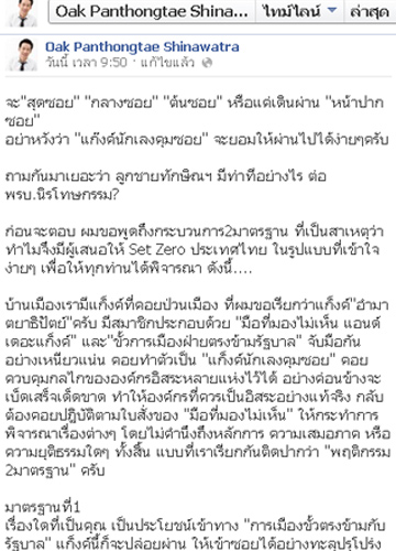 , เฟซบุ๊ก Oak Panthongtae Shinawatra