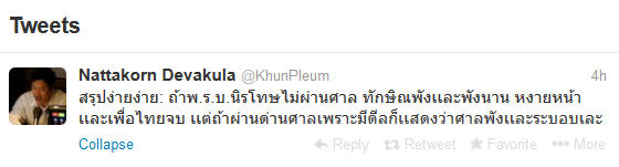 โดยข้อความบนทวิตเตอร์ @KhunPleum มีดังนี้