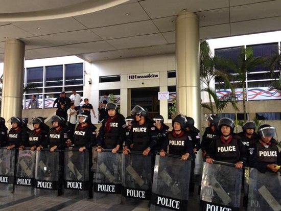 11.00 น. เจ้าหน้าที่ตำรวจตรึงกำลังอย่างเข้มงวด บริเวณด้านหน้าพรรคเพื่อไทย