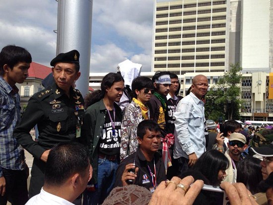 ต่อมา ในช่วงบ่าย นายอุทัย ยอดมณี ผู้ประสานงาน คปท. ได้อ่านแถลงการณ์ต่อผู้บัญชาการทหารบก (ผบ.ทบ.) ขอให้ ผบ.ทบ. และกองทัพ ประกาศจุดยืนต่อชาติ ศาสนา และพระมหากษัตริย์ โดยระบุว่า ปัจจุบันนี้วิกฤตการณ์บ้านเมืองก้าวเข้าสู่ความล่มสลายจากการบริหารงานของรัฐบาลพรรคเพื่อไทย โดยขอให้ ผบ.ทบ. ตัดสินใจ ว่า จะยืนข้างพระมหากษัตริย์ หรือจะรับฟังคำสั่งจากรัฐบาลที่หมิ่นและจ้องทำลายสถาบันกษัตริย์ โดยวิธีการไม่ยอมรับหลักนิติรัฐ นิติธรรม