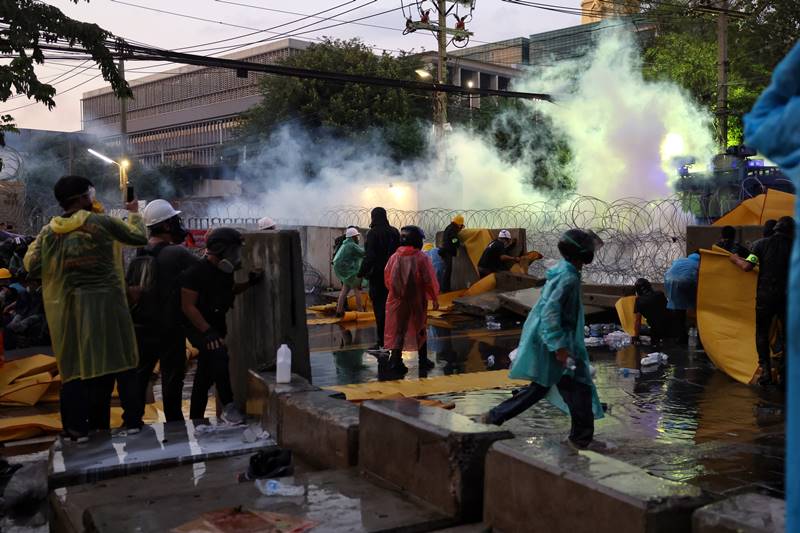 แก๊สน้ำตา ใส่ผู้ชุมนุม โดยกลุ่มผู้ชุมนุมที่ปะทะกับเจ้าหน้าที่ตำรวจ