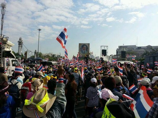 08.00 น. บรรยากาศที่อนุสาวรีย์ประชาธิปไตย ถนนราชดำเนิน มวลชนเริ่มทยอยเดินทางมาร่วมชุมนุมกันอย่างต่อเนื่อง เพื่อร่วมเดินขบวนทั่วกรุงเทพมหานคร ในเวลา 09.00 น. เพื่อขับไล่นางสาวยิ่งลักษณ์ ชินวัตร นายกรัฐมนตรี ให้ลาออกจาก รักษาการนายกรัฐมนตรี