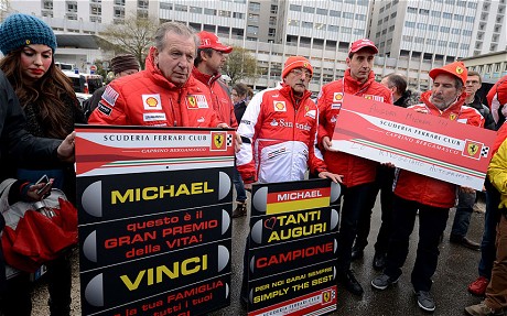 ทั้งนี้ ในแฟนเพจอย่างเป็นทางการบนเฟซบุ๊ก เฟอร์รารี ได้เผยว่า "ในช่วงเวลานี้ มิชาเอลต้องเผชิญกับการต่อสู่ครั้งสำคัญที่สุดในชีวิตของเขา ดังนั้นเราจึงต้องส่งคำอวยพรที่พิเศษอย่างมากให้แก่เขา และทุก ๆ คนใน เฟอร์รารี่ ที่ยังคงติดต่อกับครอบครัวและคนใกล้ชิดของเขาตลอดเวลา ก็ยังเฝ้าติดตามอาการของเขาอย่างต่อเนื่อง และเห็นได้ชัดว่าวันนี้มีเหตุผลถึง 2 ประการที่เราจะร่วมกันมอบคำอวยพรที่ดีที่สุดให้แก่เขา"