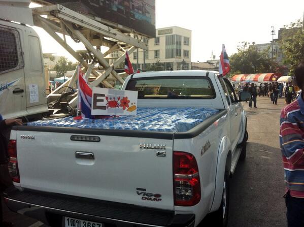 09.26 น. รถขนน้ำดื่มพร้อม เตรียมเคลื่อนขบวนออกจากราชดำเนิน 10.00 น.