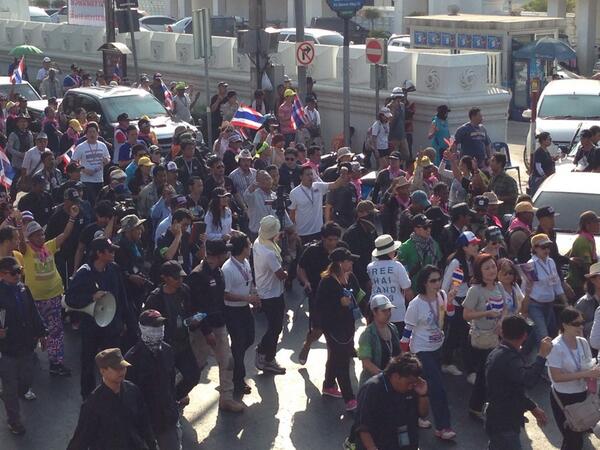 11.25 น. ม็อบ กปปส. เคลื่อนพลมุ่งหน้าถนนจักรเพชรแล้ว