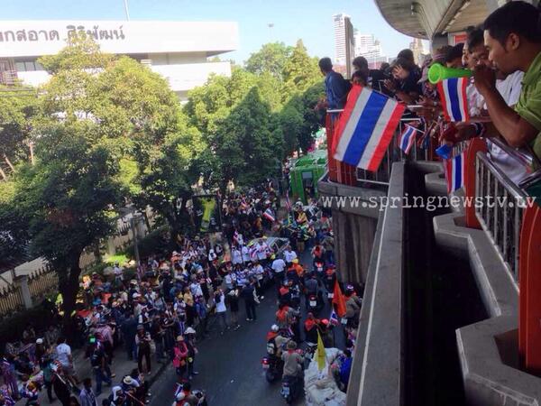 09.43 น. สุเทพ นำมวลชนออกจากราชดำเนิน มุ่งหน้าปทุมวันแล้ว ยันไม่มีนองเลือด