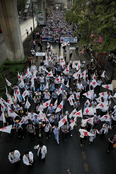 กองทัพเสื้อกาวน์ : เป็นการแสดงจุดยืนของกลุ่มบุคลากรทางการแพทย์ที่ออกมาร่วมเดินขบวนกับ กปปส.