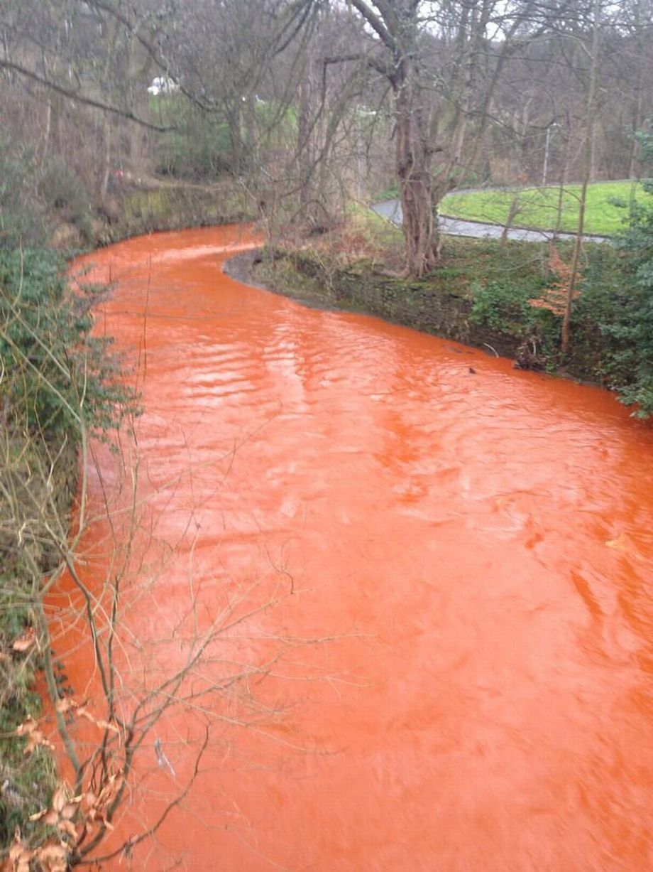 วันที่ 17 กุมภาพันธ์ 2557 เว็บไซต์มิเรอร์ของอังกฤษ มีรายงานว่า เกิดเป็นภาพแปลกตาขึ้นเมื่อน้ำในแม่น้ำโฮล์ม เมืองเวสต์ยอร์กเชียร์ เกิดเปลี่ยนสีกลายเป็นสีส้มอย่างเห็นได้ชัด หลังจากที่น้ำจากแหล่งน้ำธรรมชาตินี้ได้ถูกผสมเข้ากับเหล็กออกไซด์ จนก่อให้เกิดปฏิกิริยากลายเป็นสายน้ำสีส้มนี้