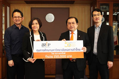บริษัท เออาร์ไอพี จำกัด (มหาชน ) (ที่ 4 จากซ้าย) มอบทุนการศึกษาให้กับมหาวิทยาลัยหอการค้าไทย จำนวน