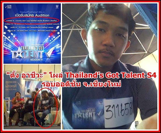 "ตั้ง อาชีวะ" โผล่ Thailand's Got Talent S4 รอบออดิชั่น จ.เชียงใหม่ เมื่อวันที่ 8-9 มีนาคม 2557 ที่ผ่านมา มีคนเข้าไปถามว่า ใช่น้องตั้งหรือเปล่า?